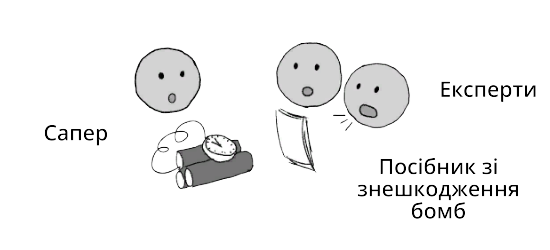 Один гравець стає Сапером. Всі інші гравці стають Експертами і мають використовувати Посібник зі Знешкодження Бомб, щоб допомогти знешкодити бомбу.